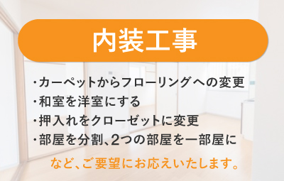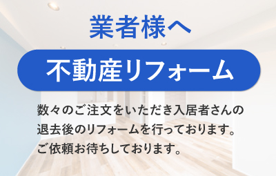 中古住宅の原状回復のためのリフォーム、機能性やデザイン性等重視の大規模リフォームやリノベーション。お困りごとに対応する小工事リフォームも行っております。